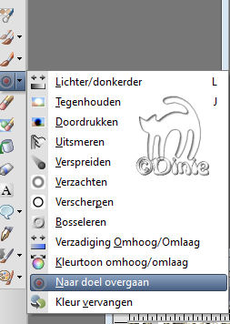 kleur het dan in met penseel naar doel overgaan